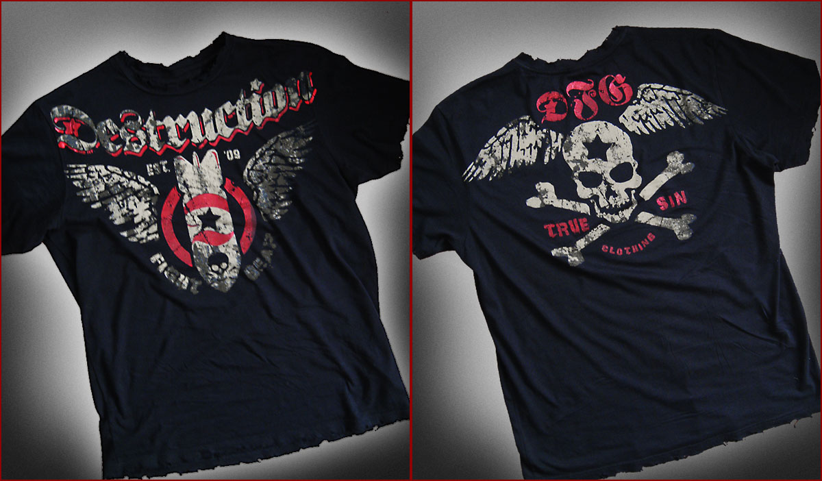 100% super soft, pre-washed cotton. Distressed collar, sleeves and hem. Fashion fit. Printed on both sides, with red foil accents. Special Limited Edition patch sewn at bottom hem.