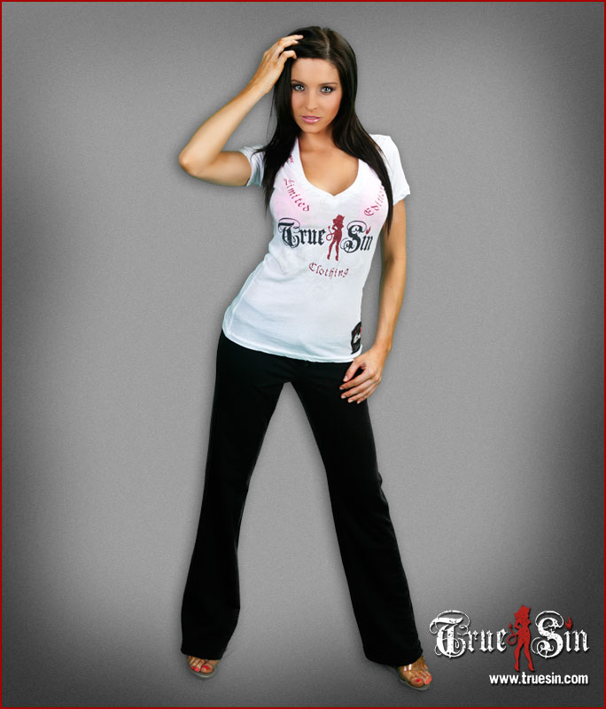 100% super soft, pre-washed cotton. Drawstring waist. True Sin She Devil printed on upper right hip in rear.